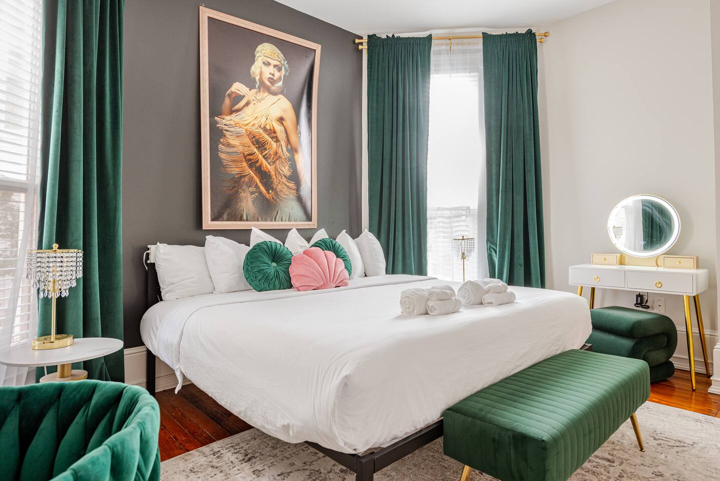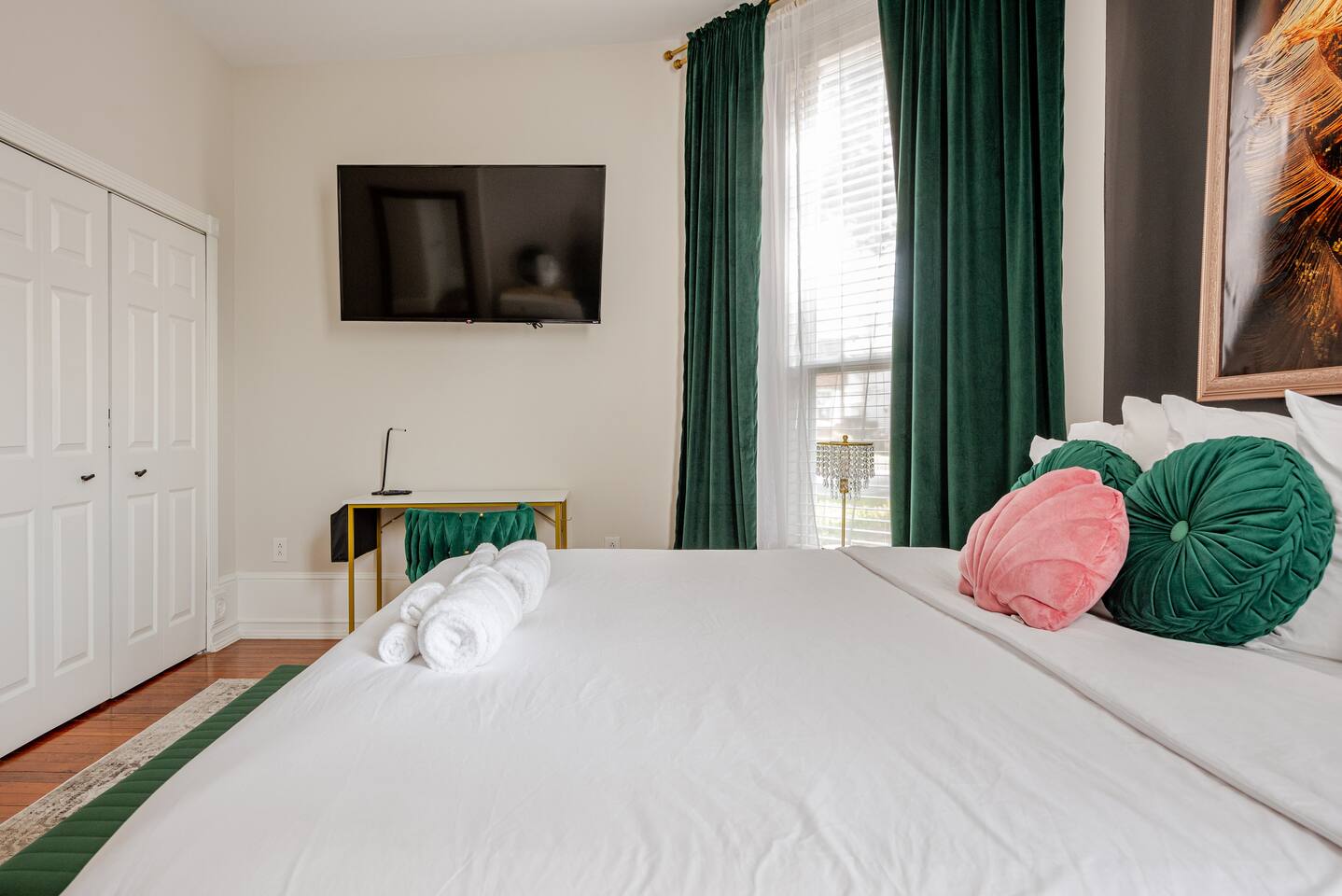 📍 Prime Chevy Chase / Ashland location • 1 mile to Downtown Lexington & University of Kentucky • 2 miles to Rupp Arena & Kroger Field Walk just 0.05 miles to restaurants, breweries, and coffee shops along Chevy Chase & National Ave. One block from Woodland Park. Stay in a beautifully renovated early-1900s home with a speakeasy-inspired flapper theme, blending historic charm with modern comfort.