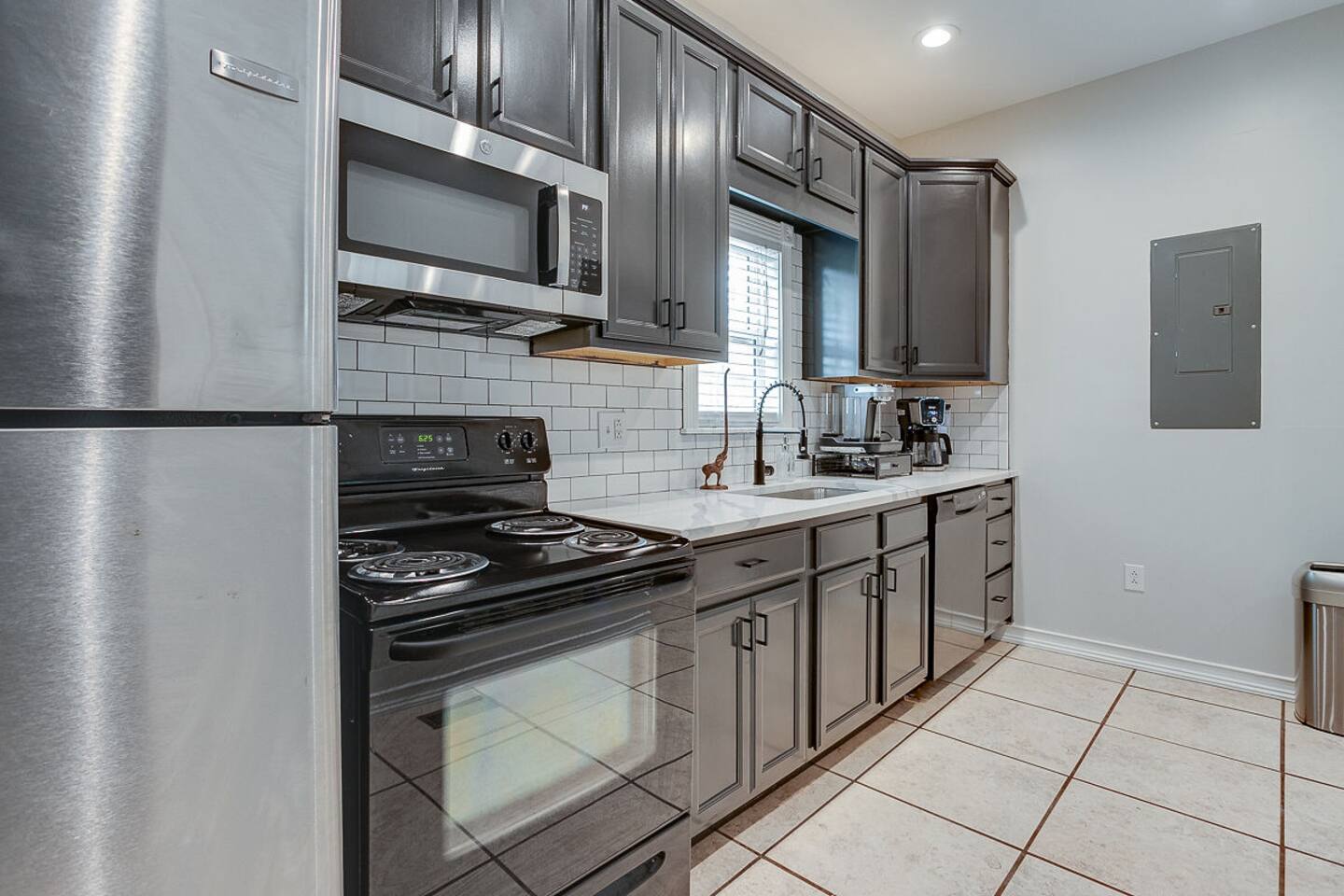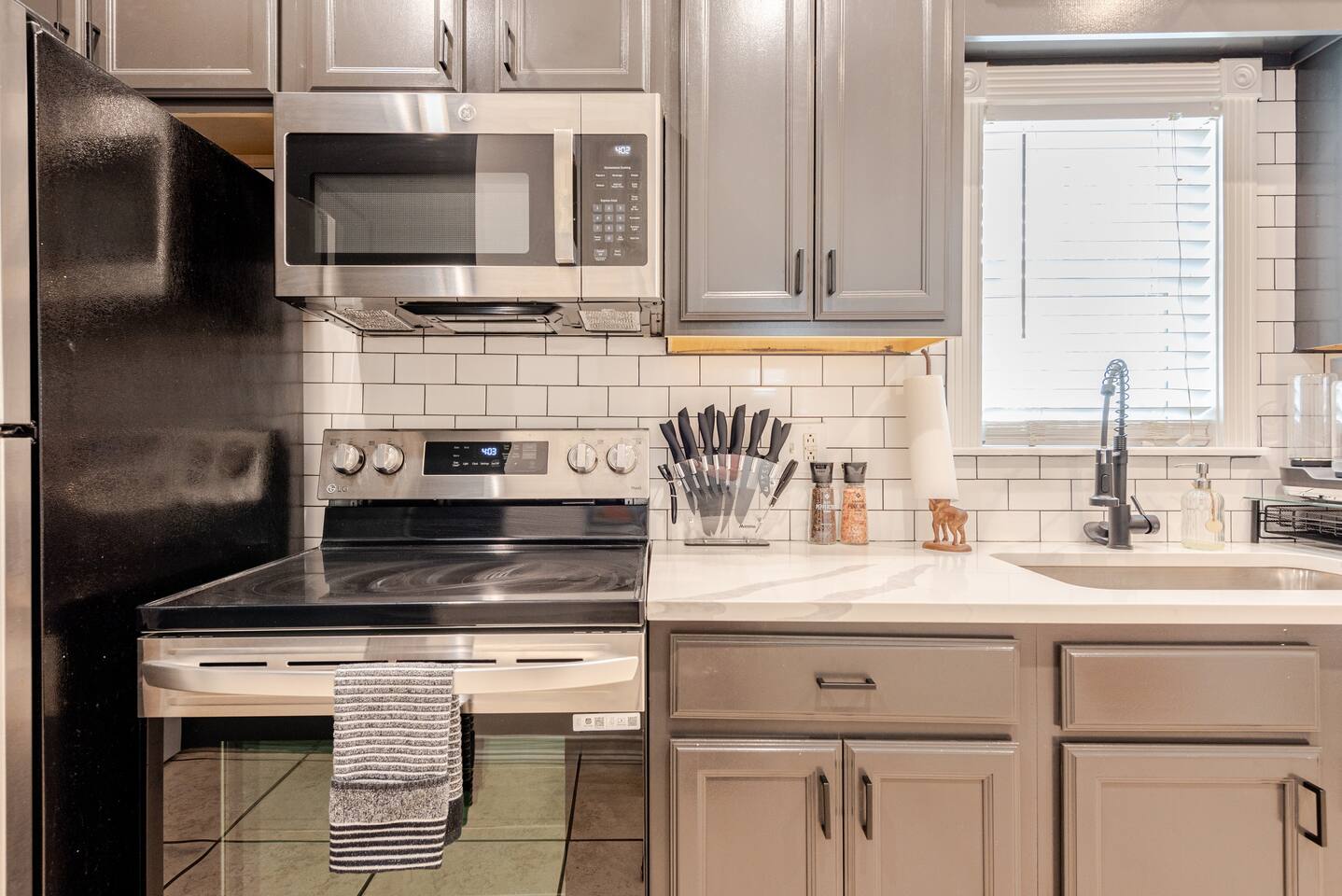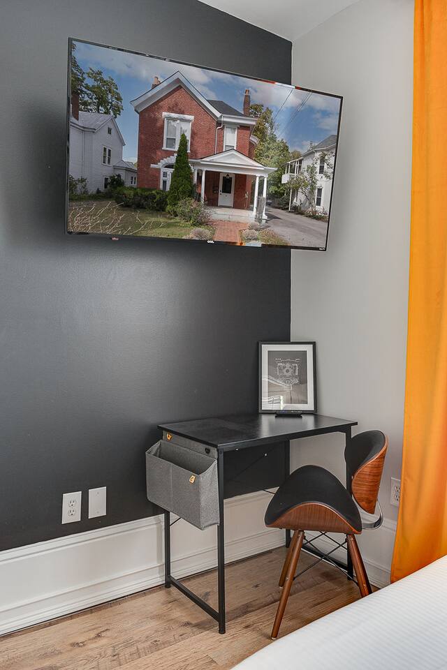 Private Lower Unit • Flapper-Themed • 5-Star Comfort Welcome to your private, lower-level retreat in our newly renovated Flapper-era themed home. You'll enjoy full private access to the entire lower unit—perfect for a peaceful and stylish Lexington stay. 🛏️ Master Suite King-size memory foam bed with hotel-quality linens 55" Smart TV for streaming your favorites Dedicated desk space—ideal for remote work or planning your day 🛏️ Innovation Room Full-size bed with cozy linens 55" Smart TV and personal work desk Stylish decor with comfort in mind 🛋️ Living Room – The Flappers Hangout Spacious lounge area 70" Smart TV for a cinematic experience Great for relaxing after exploring Lexington 🛁 Modern Bathroom Large walk-in shower Backlit vanity mirror Thoughtful touches for a spa-like feel 🍳 Fully Equipped Kitchen Electric stove, fridge, Keurig & drip coffee makers Air fryer, cookware, and all essential utensils Ideal for anything from light snacks to full meals 🧼 Cleanliness & Comfort Zippered protective covers on all beds & pillows Hotel-standard cleaning between guests Located minutes from Downtown Lexington, University of Kentucky, and Rupp Arena, our home is a perfect base for travelers, visiting professionals, or UK events.