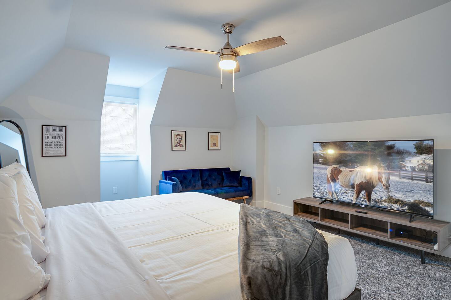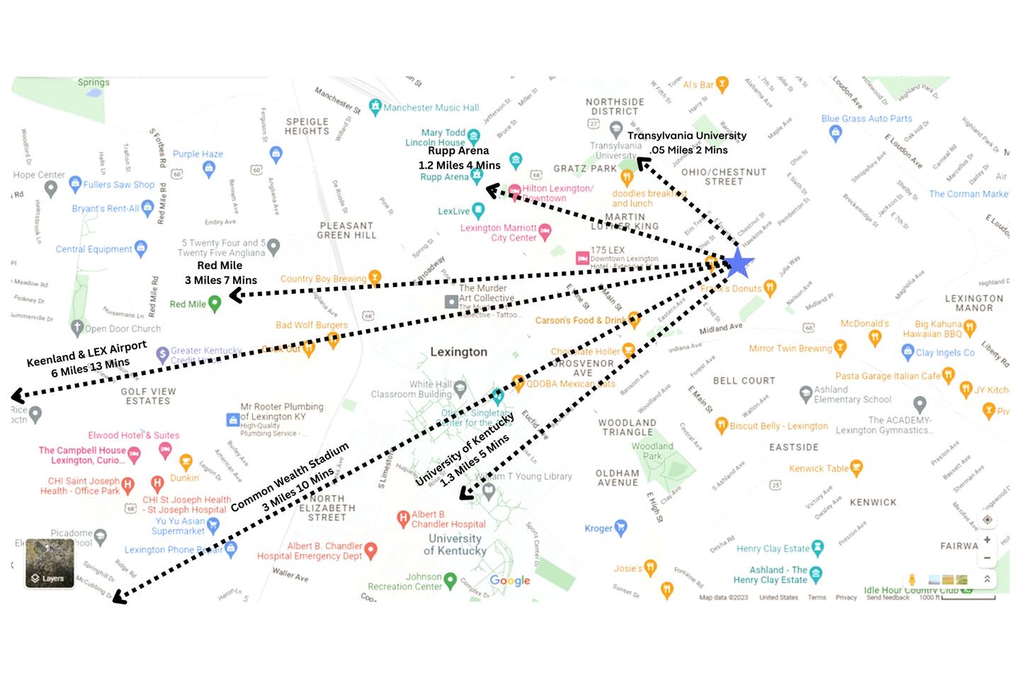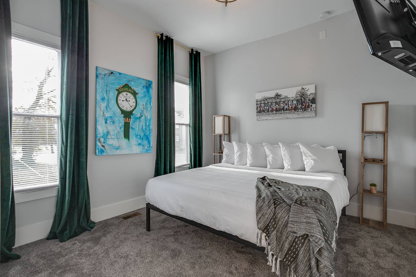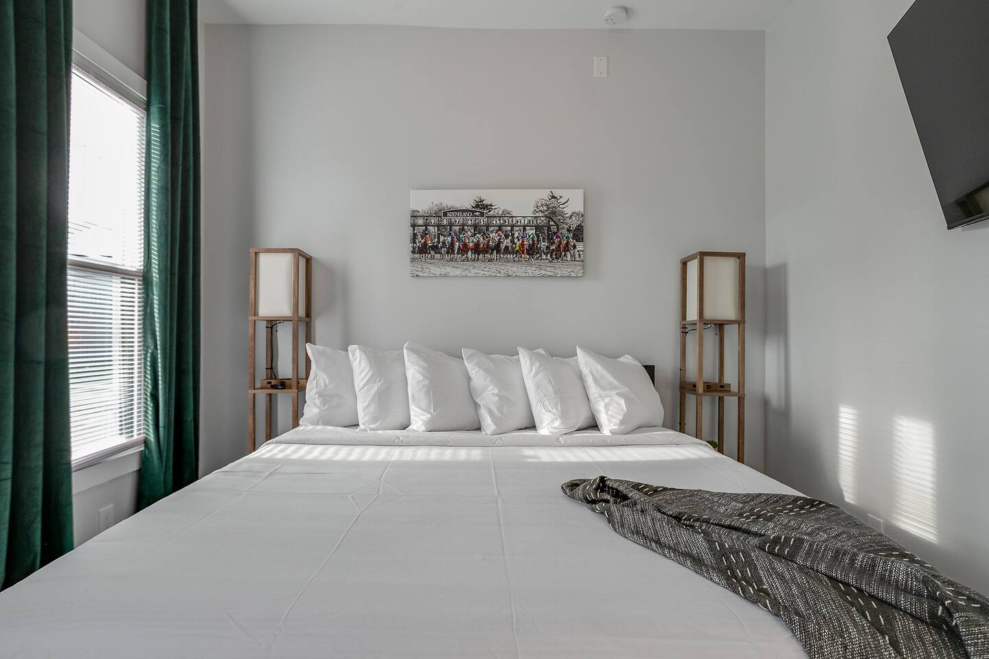 Enjoy a comfortable stay just minutes from Lexington’s best restaurants, breweries, and local favorites—plus walk across the street to Martine’s Coffee Shop for your morning coffee or a quick bite. Perfect for game days, concerts, bourbon country visits, or a relaxing weekend getaway. 🏡 The Home • Three spacious bedrooms, each with a King-size memory foam bed • Fully stocked kitchen with seating for six—ideal for families or groups • Large living room with a 75” Smart TV and a 2-player arcade machine 🛏 Bedrooms • Keeneland Room (1st floor): King bed + 60” TV • Bourbon Room (1st floor): King bed, 60” TV & dedicated workspace • Presidential Room (2nd floor): King bed, 65” TV & loveseat 🛁 Bathrooms • Two full bathrooms; upstairs bath includes a bidet for added comfort 📺 All TVs include a bring-your-own-login streaming system so you can enjoy your favorite apps during your stay. Book now and enjoy comfort, entertainment, and a prime central Lexington location.