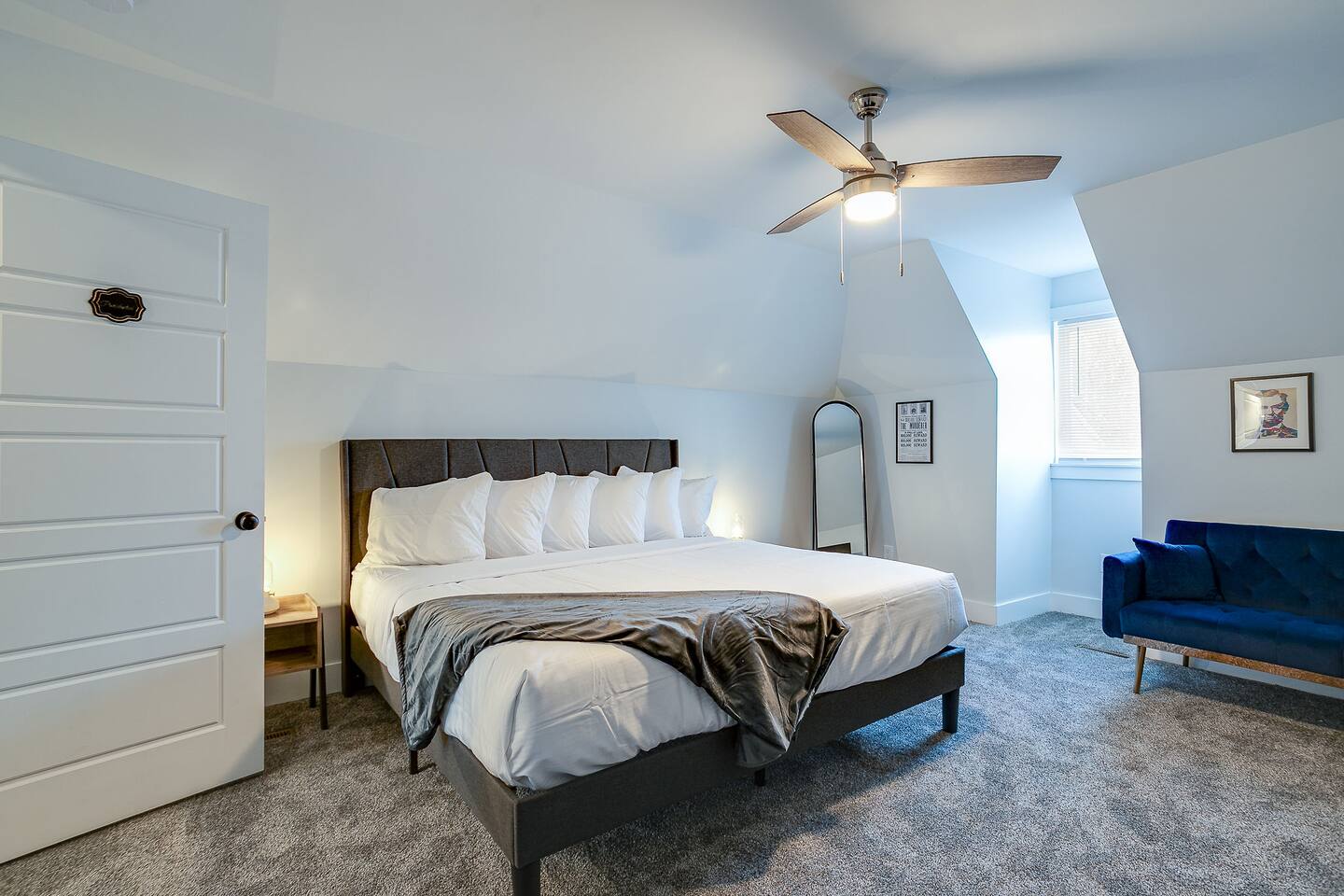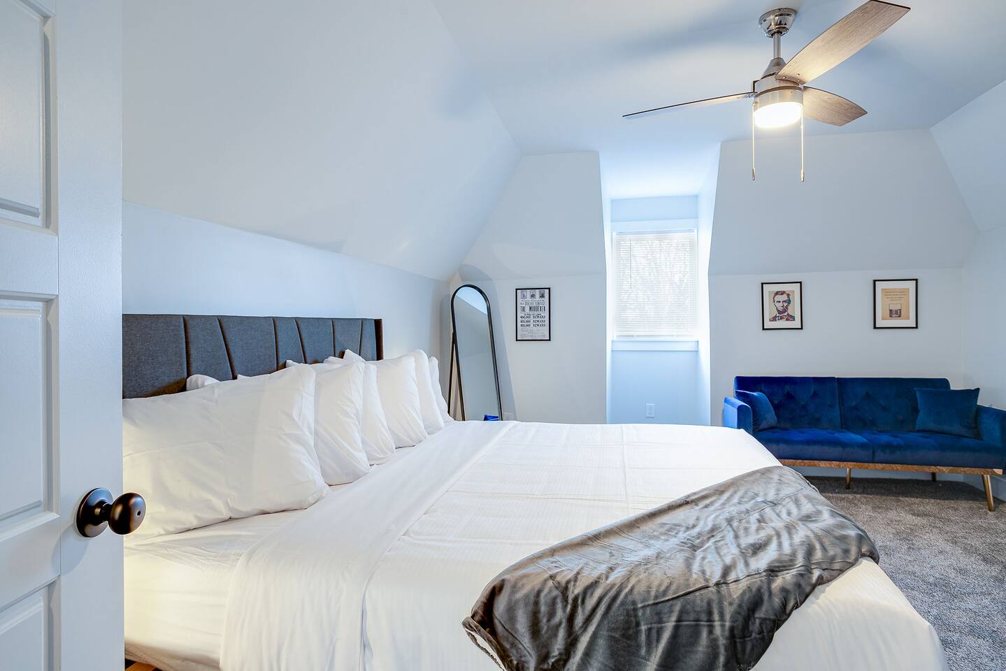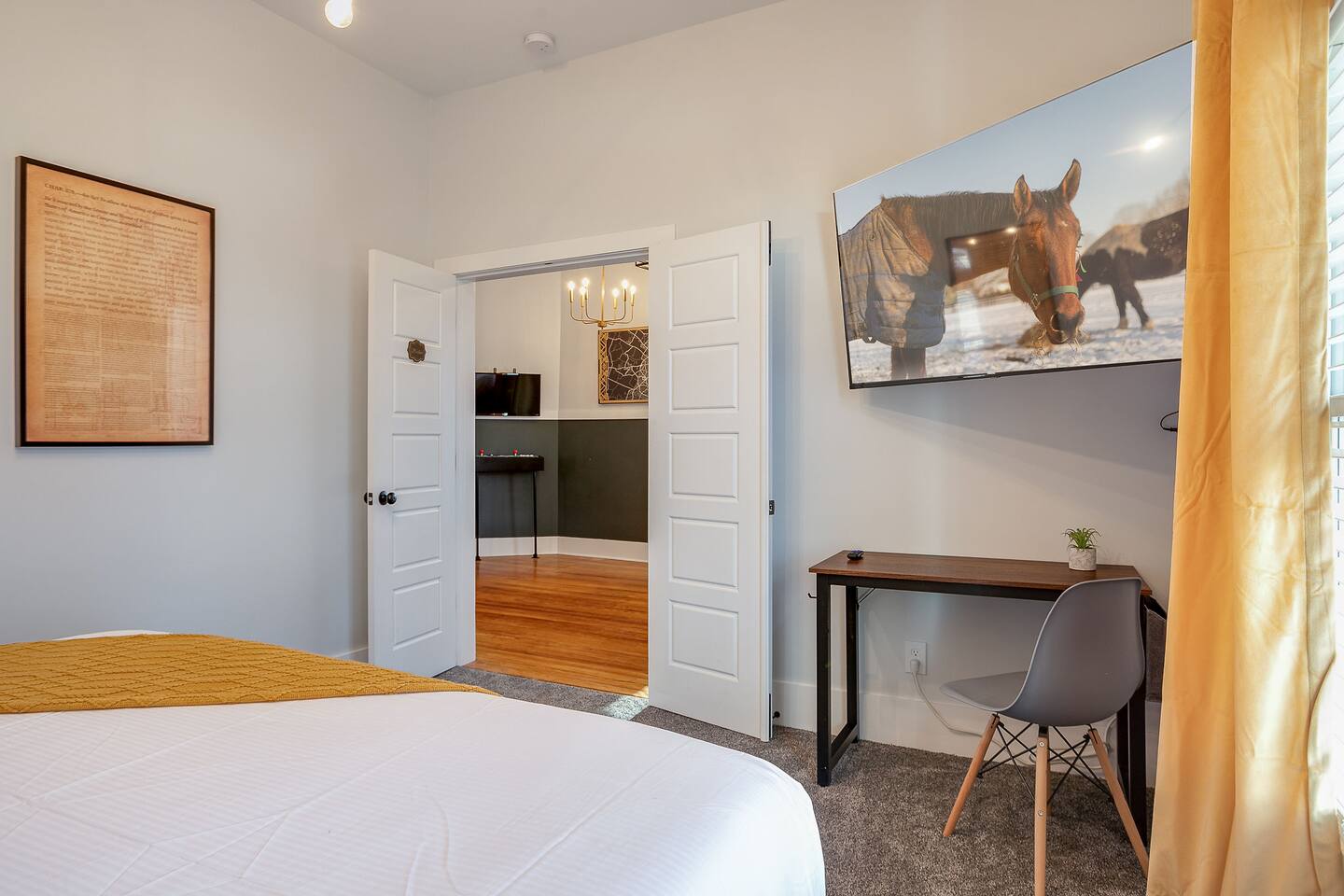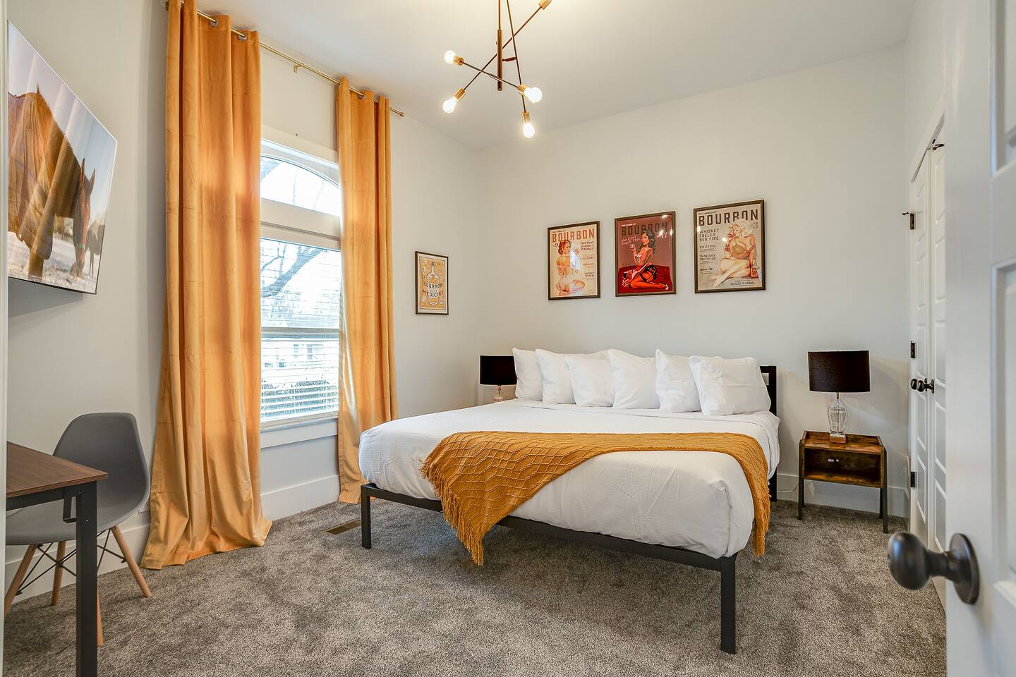 Enjoy a comfortable stay just minutes from Lexington’s best restaurants, breweries, and local favorites—plus walk across the street to Martine’s Coffee Shop for your morning coffee or a quick bite. Perfect for game days, concerts, bourbon country visits, or a relaxing weekend getaway. 🏡 The Home • Three spacious bedrooms, each with a King-size memory foam bed • Fully stocked kitchen with seating for six—ideal for families or groups • Large living room with a 75” Smart TV and a 2-player arcade machine 🛏 Bedrooms • Keeneland Room (1st floor): King bed + 60” TV • Bourbon Room (1st floor): King bed, 60” TV & dedicated workspace • Presidential Room (2nd floor): King bed, 65” TV & loveseat 🛁 Bathrooms • Two full bathrooms; upstairs bath includes a bidet for added comfort 📺 All TVs include a bring-your-own-login streaming system so you can enjoy your favorite apps during your stay. Book now and enjoy comfort, entertainment, and a prime central Lexington location.