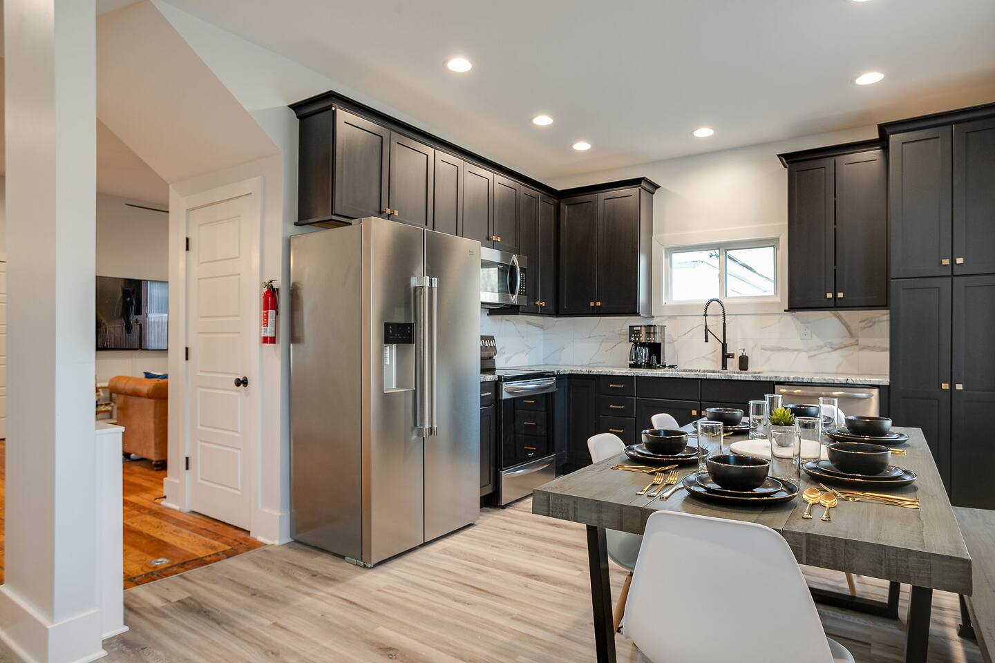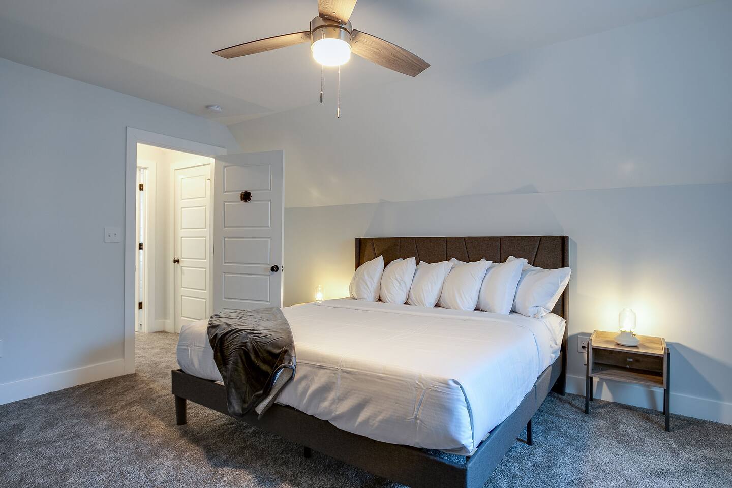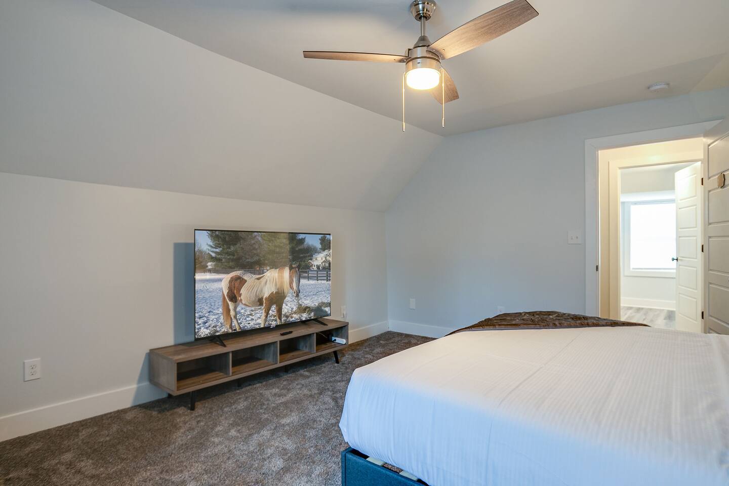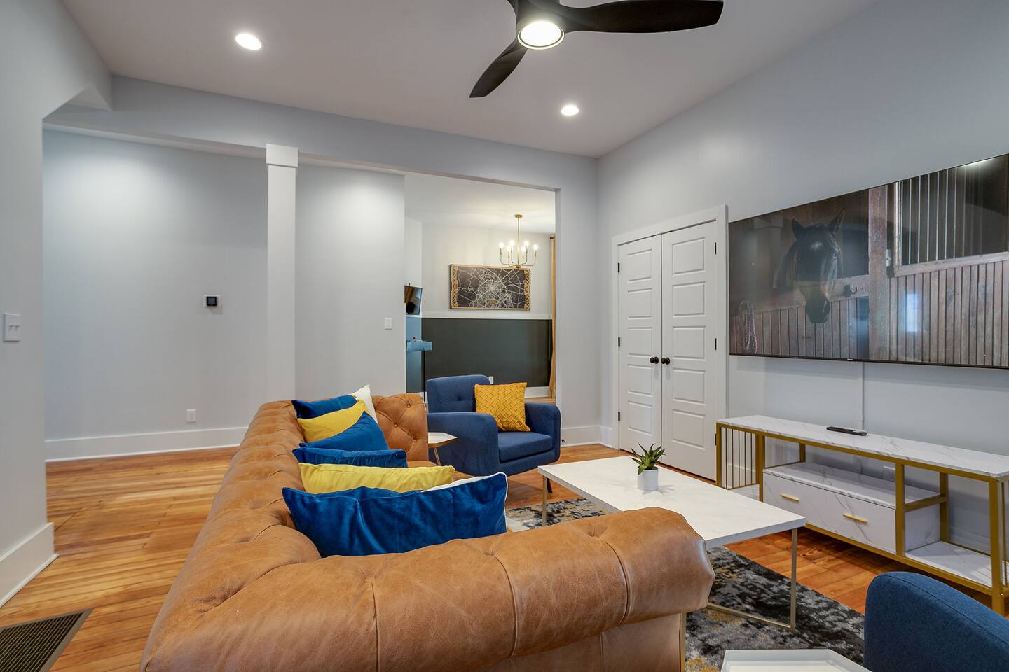 Enjoy a comfortable stay just minutes from Lexington’s best restaurants, breweries, and local favorites—plus walk across the street to Martine’s Coffee Shop for your morning coffee or a quick bite. Perfect for game days, concerts, bourbon country visits, or a relaxing weekend getaway. 🏡 The Home • Three spacious bedrooms, each with a King-size memory foam bed • Fully stocked kitchen with seating for six—ideal for families or groups • Large living room with a 75” Smart TV and a 2-player arcade machine 🛏 Bedrooms • Keeneland Room (1st floor): King bed + 60” TV • Bourbon Room (1st floor): King bed, 60” TV & dedicated workspace • Presidential Room (2nd floor): King bed, 65” TV & loveseat 🛁 Bathrooms • Two full bathrooms; upstairs bath includes a bidet for added comfort 📺 All TVs include a bring-your-own-login streaming system so you can enjoy your favorite apps during your stay. Book now and enjoy comfort, entertainment, and a prime central Lexington location.